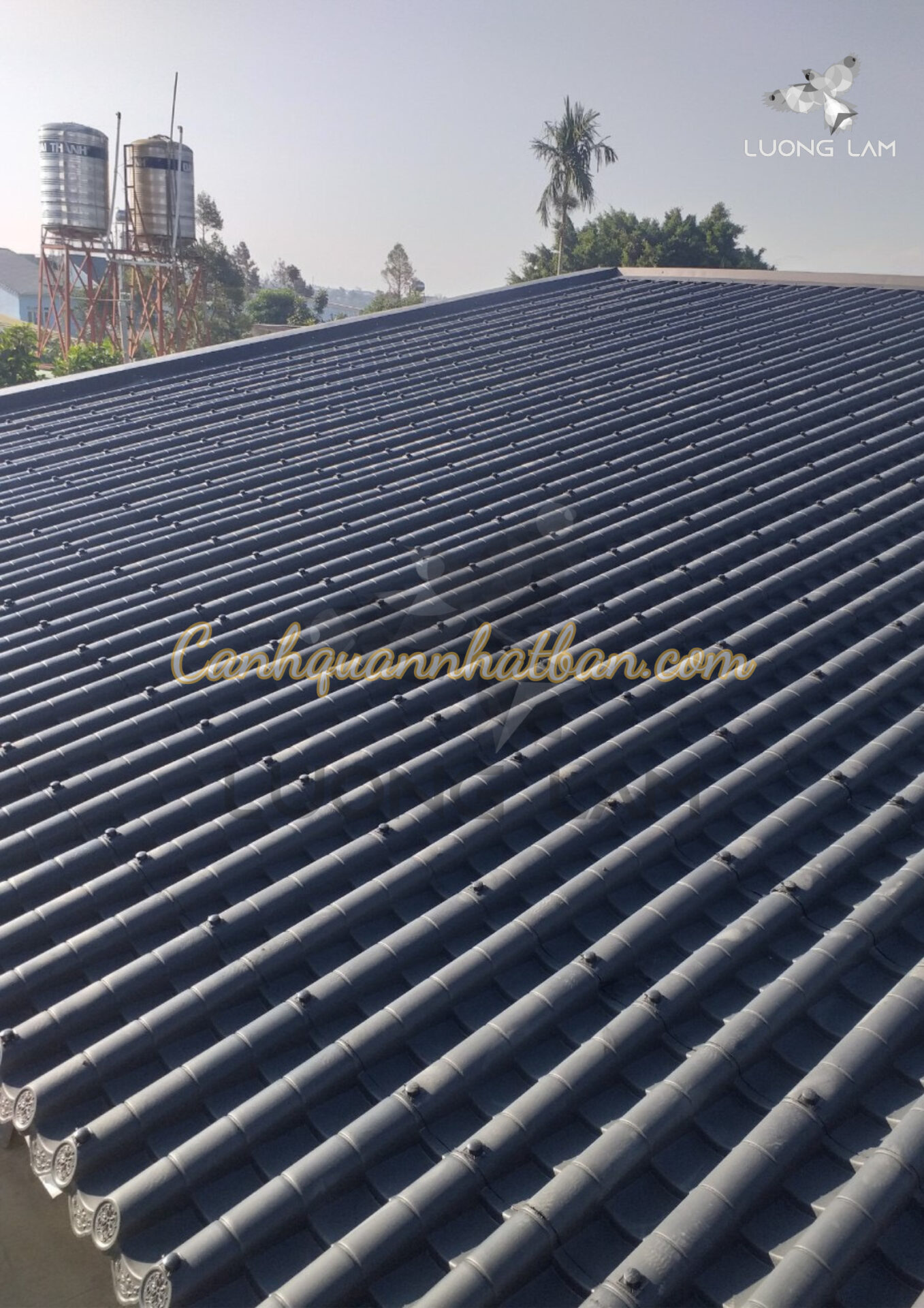 - Ngói nhựa âm dương Nhật Bản được sản xuất từ nhựa PVC nguyên sinh màu xanh ghi, không mùi, không chứa BPA độc hại, không cong vênh.