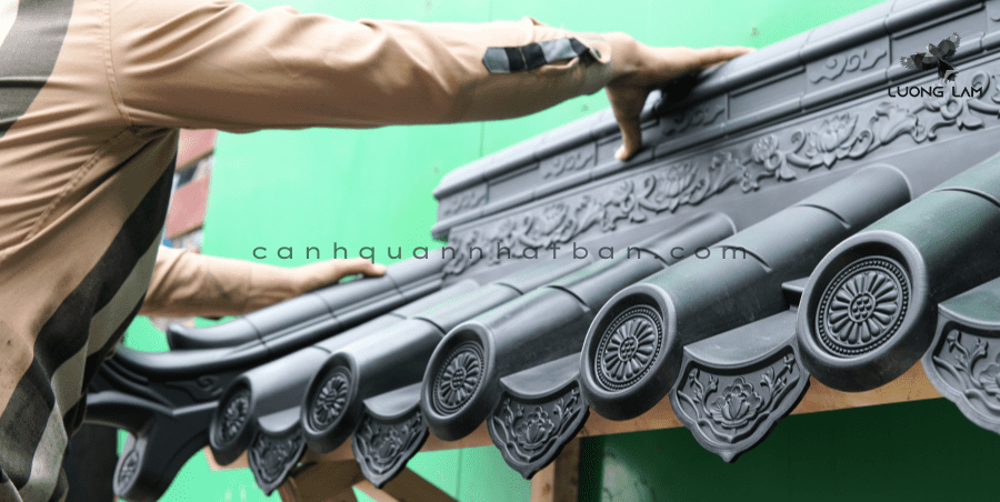 👉 Bước 2: Đặt ngói từ dưới lên trên
