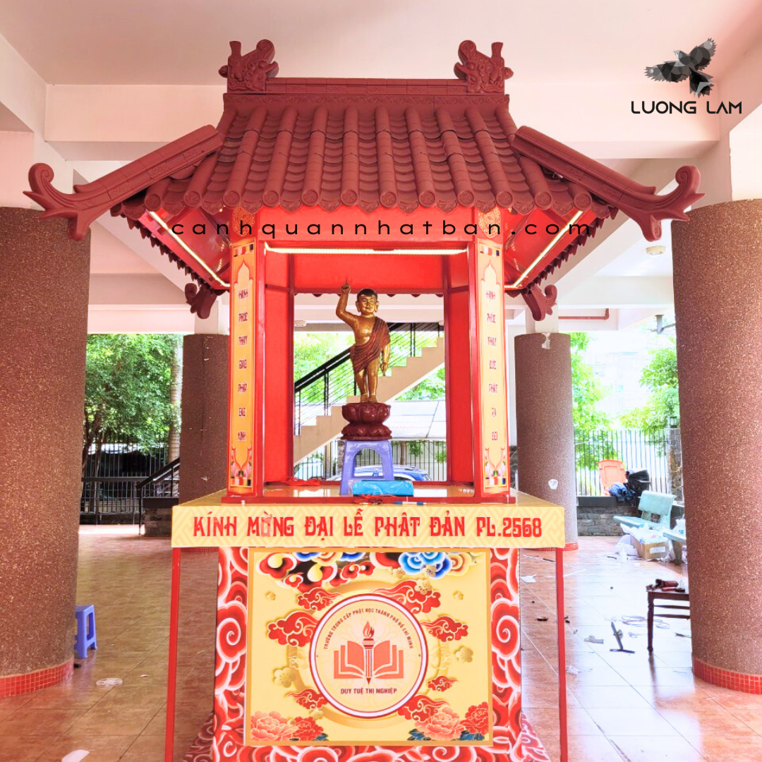 Mẫu xe diễu hành , xe hoa kính mừng ngày Đức Phật đản sinh lợp ngói nhựa âm dương Nhật Bản